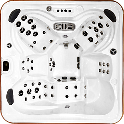 Для изделия таких размеров, в гидромассажном СПА-бассейне Ловиа Спа ZR7103 установлено довольно много форсунок - 32 штуки. Через них вода и воздух направленно воздействуют на тело, производя желаемый гидромассажный эффект. Каждый пользователь может индивидуально регулировать силу потока.