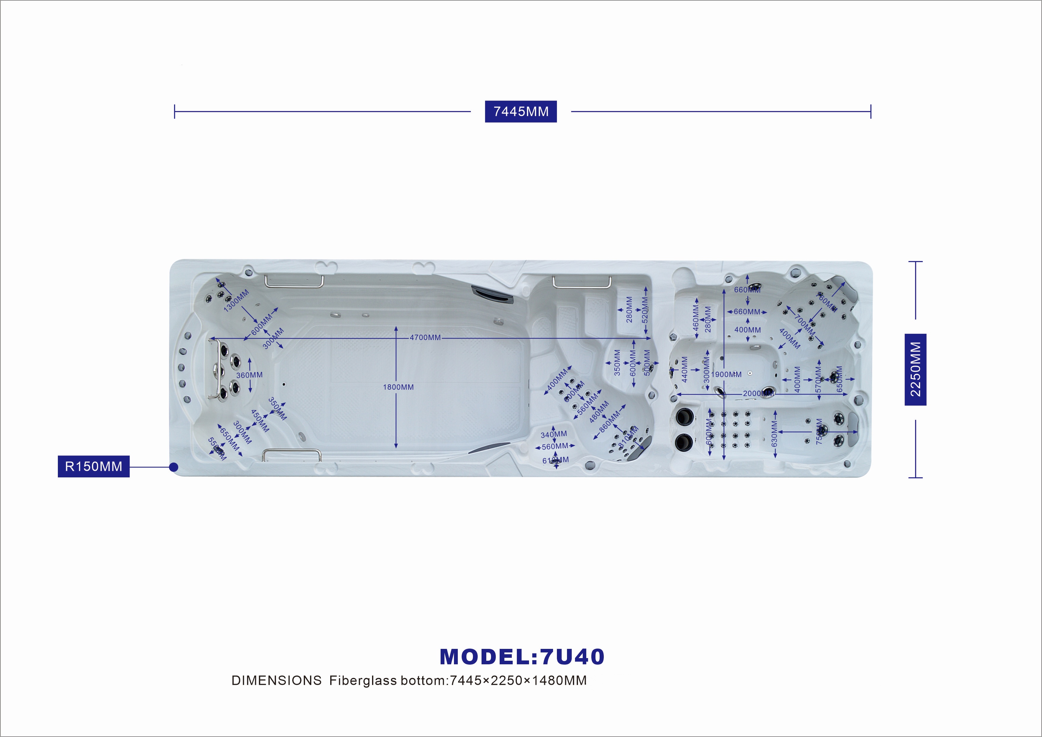 NordicSpa Garibaldi (Гарибальди) 7U40 — это лучшее решение для тех, кто ценит комфорт, технологичность и качество без компромиссов, независимо от времени года! Этот просторный бассейн длиной 7,45 метров идеально подходит как для активных тренировок, так и для полноценного отдыха и релаксации.