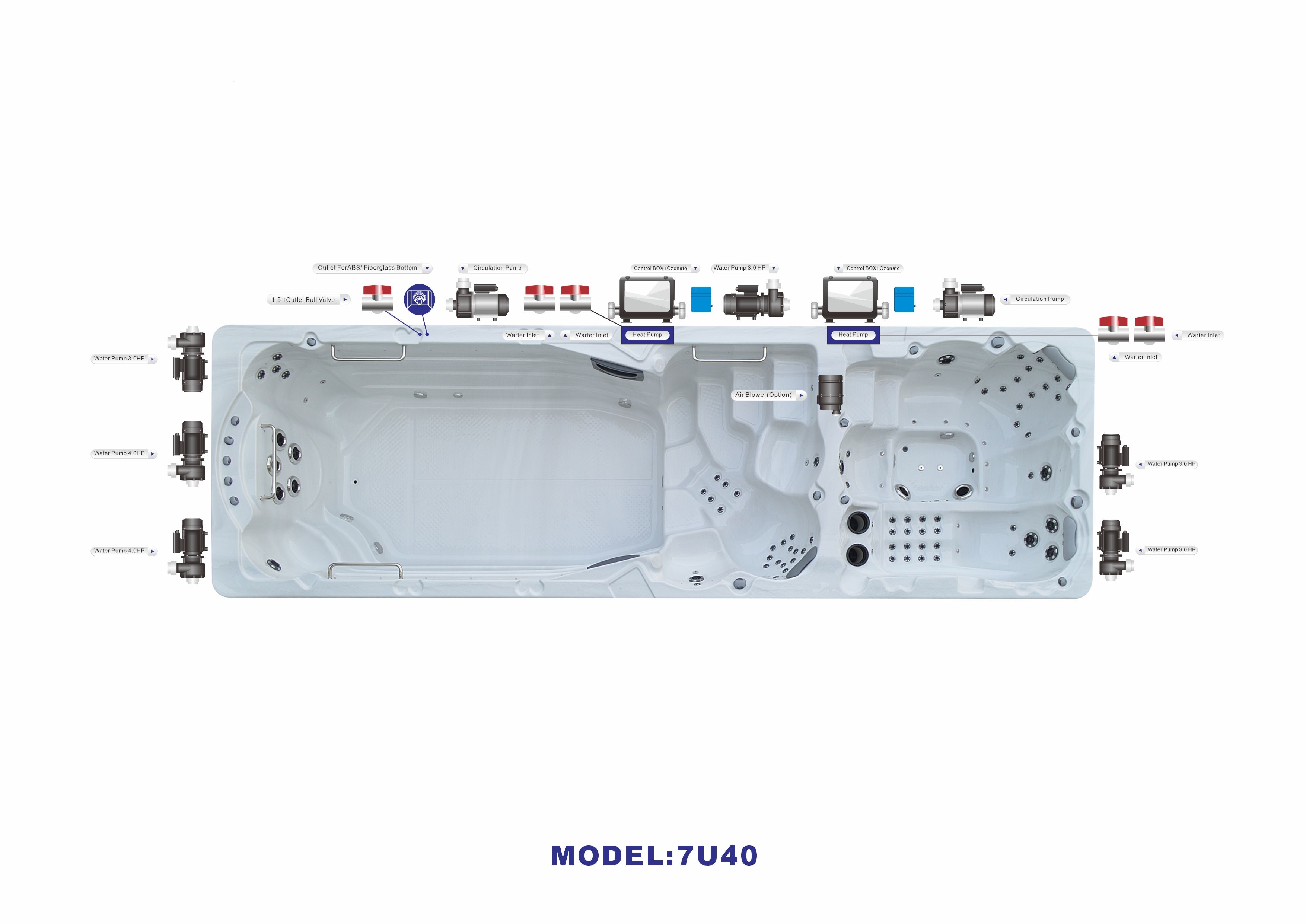 Это полностью готовое решение для тренировок и отдыха. Мощную систему гидромассажа, создающую невероятный комфорт в спа-зоне, обеспечивают 101 форсунка. Эффективный массаж и мощные водяные потоки создаются четырьмя производительными насосами: два насоса мощностью 2,2 кВт для спа-зоны, и два мощных насоса: 2,2 кВт и 2,9 кВт для плавательной зоны, что позволяет создать идеальное встречное течение для плавания.